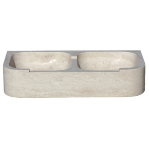 Troia Light Travertine Farmhouse Double Bowl Kitchen Sink (W)46 cm (L)92 cm (H)18 cm